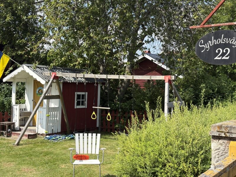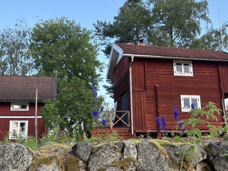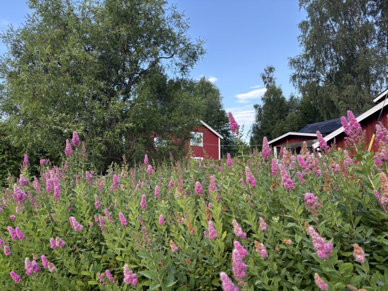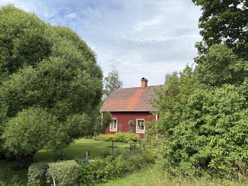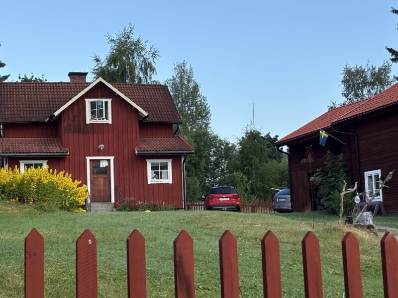赤い家並みを眺めながら歩くだけで心がほっこり和むようです。窓辺には、小さなダーラナホースが飾られていたり、工夫がそれぞれにあって、おうちウォッチングが楽しい。庭に子どものための小屋や遊び場があったり、それぞれの家らしさがあって飽きません。