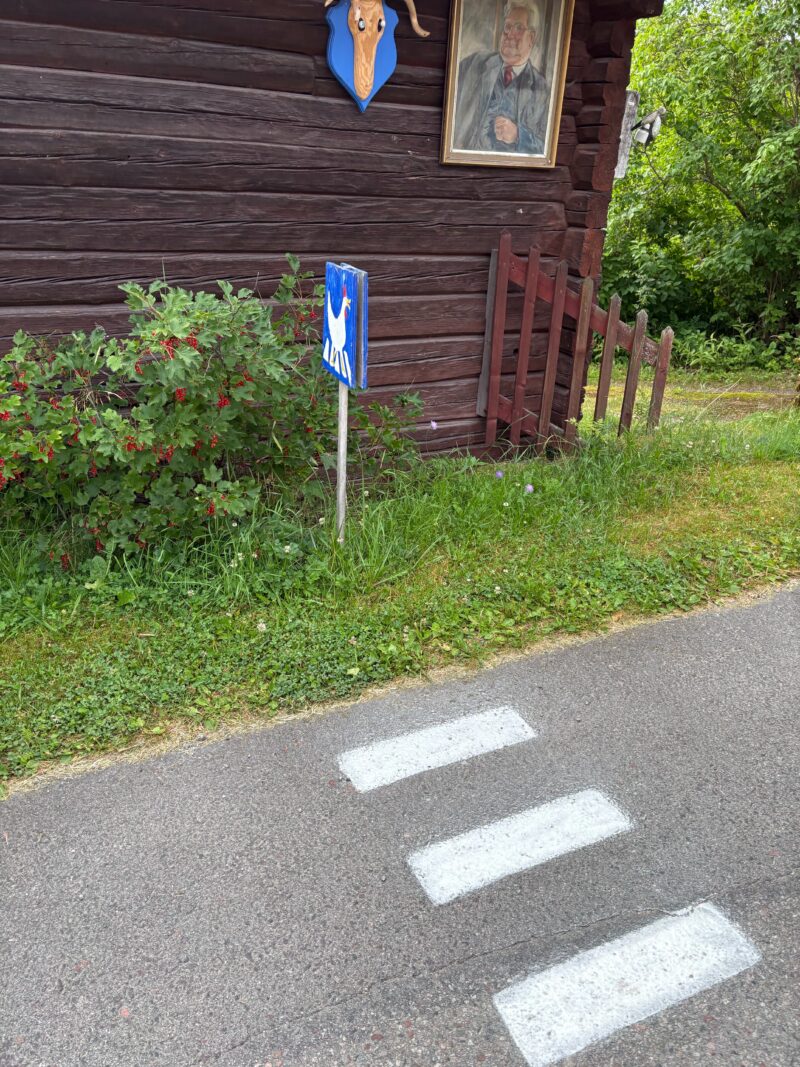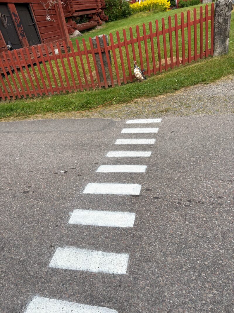 村歩きをしていると、なんと「小さな鶏専用の横断歩道」を発見! 「鶏はどこ?」と探してみると、実はブリキで作られた鶏のオブジェ🐓。自然な色にペイントされ、本物と言われても信じてしまいそう。遊び心満載のユーモアに思わず笑顔になってしまいます。専用の横断歩道を用意してもらうなんて、鶏くんも幸せそうです。