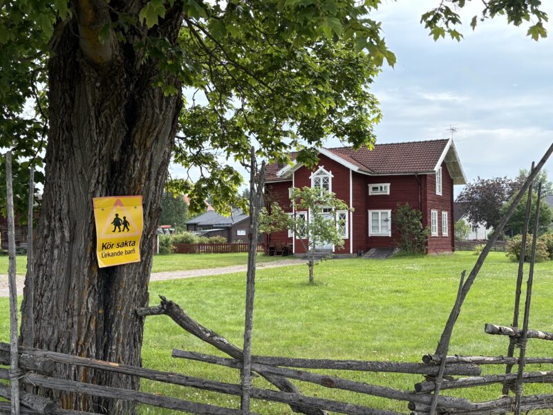 ダーラ・フローダの村でどこを歩いても目に入ってくるスウェーデンレッドの家々。その家々が本当にかわいらしくて、まるで童話の世界に迷い込んだようです。リンドグレーンの「やかまし村のこどもたち」に出てくる子どもが、今にも元気に飛び出してきそうな雰囲気です。