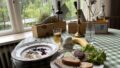 列車内で軽くスナックを食べただけでお昼を逃していたので、早めの夕食までの間にフィーカを楽しもうと、村のガーデンカフェへ散策に出発。かわいい家々を眺めながら川を渡り、道に迷いつつもようやく到着。ちょうどお昼時で、庭先の注文カウンターには長い列。ガーデンのパラソル席はほぼ満席で、皆さんランチやフィーカを楽しんでいました。私は小さめのデニッシュを一つテイクアウト。地元の人たちに愛される人気カフェの雰囲気を少し味わいました。
