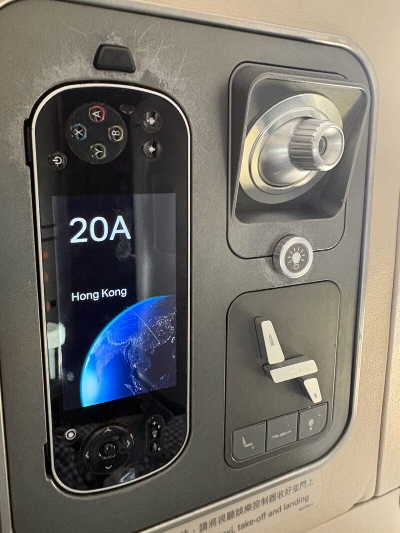 往復とも香港での乗り継ぎがあり、機材も区間ごとに異なりました。関空⇔香港間は短中距離路線のため、ビジネスクラスといっても「リージョナルビジネスクラス(簡易版)」の仕様でした。