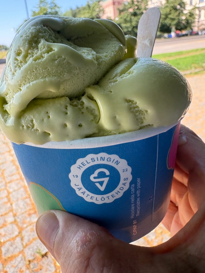 フィンランドの人たちは老若男女ジェラートが大好き。街中至るところにジェラートスタンドを見かけました。カイヴォヴイスト公園の海岸沿いを歩いていると200mに一件はスタンドが!私がいただいたのは、現地在住の方が美味しいとガイドブックで言っていたお店Jäätelötehdas(ヤーテロテフダス/アイスクリーム工場)で。確かに美味しかったです。これでシングルカップ!もりもり! ー ピスタチオ (€5.95)