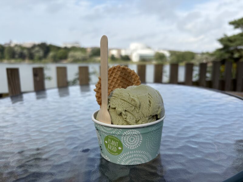 🍴 注文メニュー: ピスタチオアイス(€5.17)、豆腐のキッシュ & サーモンのキッシュ(€17.24・テイクアウト)