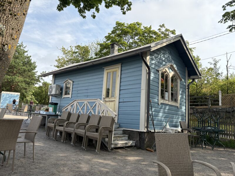 中心街から坂を上ってたどり着く、1896年建造の木造ヴィラの庭にあるカフェ。青い小屋が可愛らしい。トーロ湾を見下ろし、対岸にはアアルトが手掛けたことで有名なフィンランディアホールの全景が見えます。親子連れや、犬の散歩途中など地元の方々のくつろぐ姿が日常を感じさせます。気持ちのいい景色を眺めながら、すっかりローカル気分でゆったりできました。ジェラートも安心な材料を使用しているとか。添えてあるクッキーが良いアクセントとなってジェラートそのものも美味しすぎる!
