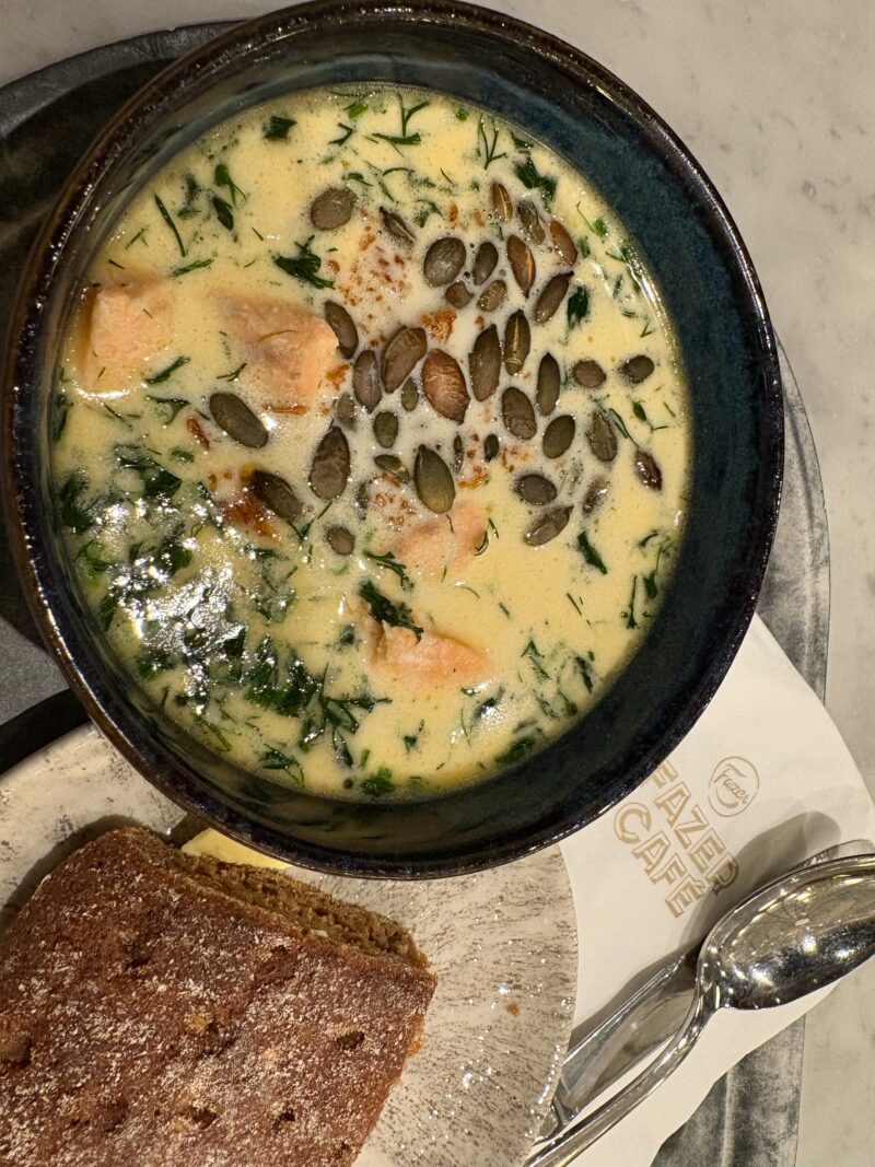 🍴 注文メニュー: スープブッフェ(サーモンスープ+パン €15.99)