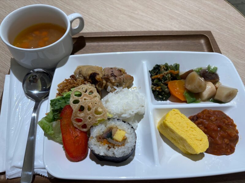 私が利用した時のメニューは、こんな感じ。想像以上に種類が豊富でした。出発前の軽食から、しっかり食事を取りたい人まで、十分満足できる内容でした。