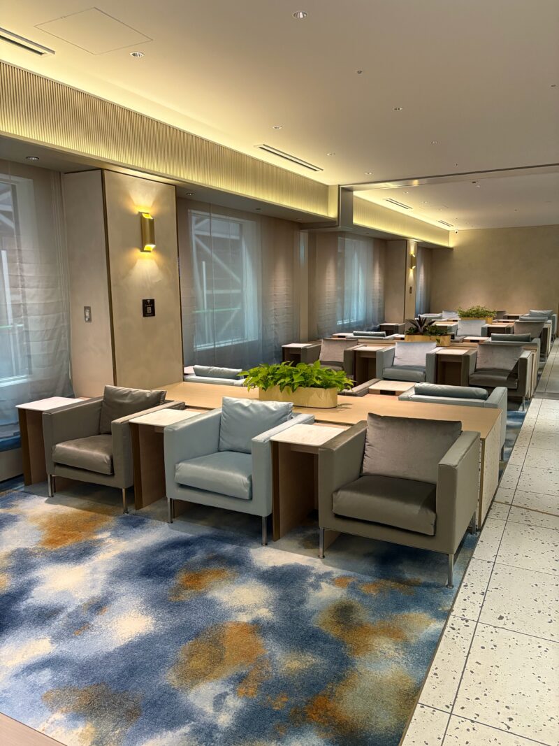 展望については、正直なところあまり良くありませんが、その分、ラウンジ内はとても広く、座席の種類も豊富。静かに過ごしたい人、食事を楽しみたい人、グループで利用したい人、いろんな場面に対応できそうです。