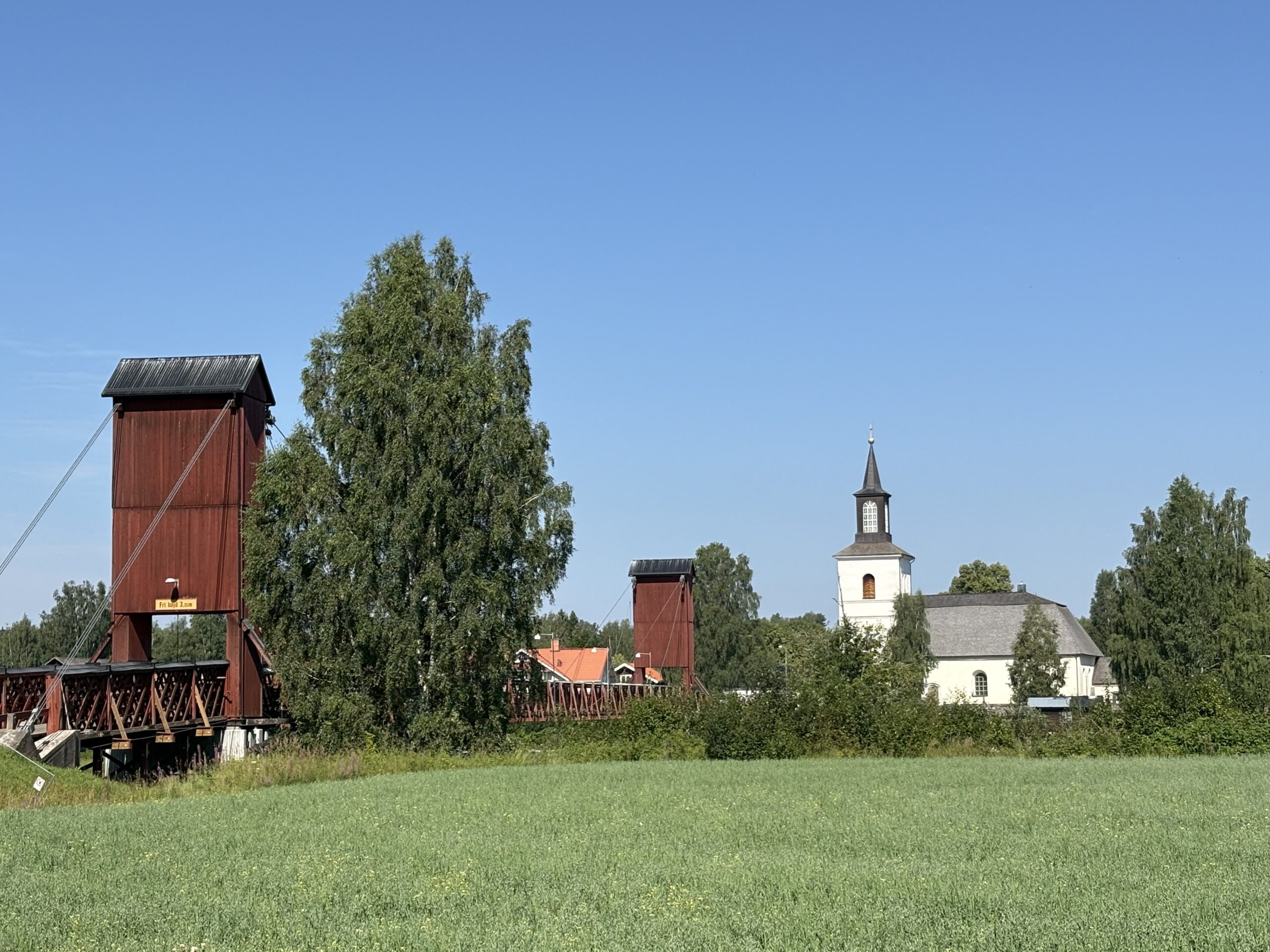 Dala-Floda を横切る木製の吊り橋(Kyrkbron)で全長約158 メートル。スウェーデンで最長級の車両が通ることができる木製吊り橋として知られています。