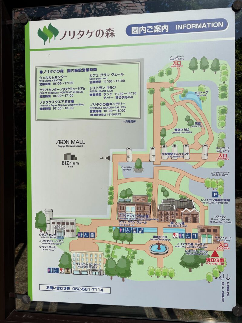 周遊バスに乗って約10分。ノリタケの森前に到着します。バス停が目の前なのが嬉しい。実は3年前にも訪れた場所で、同じタイミングでの再訪になりました。