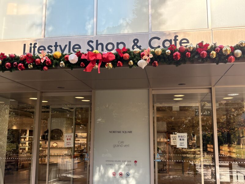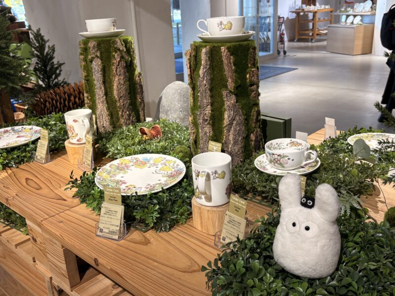 ノリタケショップは必見。この季節ならではの素敵なクリスマスのテーブルコーディネートや、トトロのナンバー入りマグなど、心惹かれる雑貨や食器がずらり。キッチン用品、食器が好きな人にはたまらない場所です。