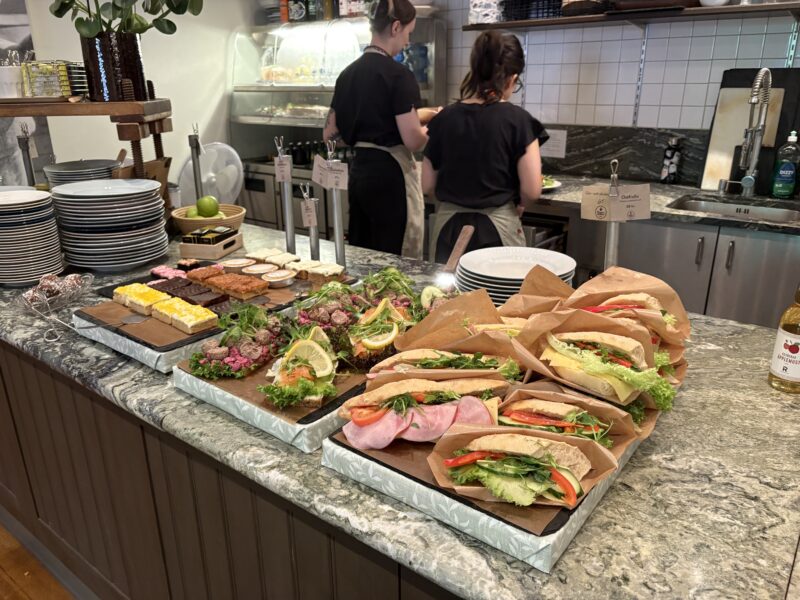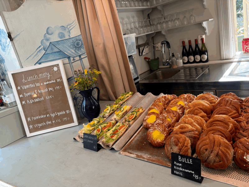 メニュー: サンドイッチ、自家製ケーキ、デニッシュ、サラダ、パンケーキなど。地元の果実や野菜を使ったオーガニック志向のメニューが魅力。