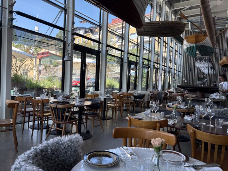 実は、ガイドブックで紹介されていた「Oaxen Slip)」というお店を目指して行ったのですが、どうも店名が似てるけど、違うような…?でも場所は合っているし、と思って入店。で気づいたら別のイタリアンレストランでした💦。とはいえ、湖を望む大きな窓と明るい店内、テラス席の雰囲気も良く、結果的には気持ちのいいランチに。