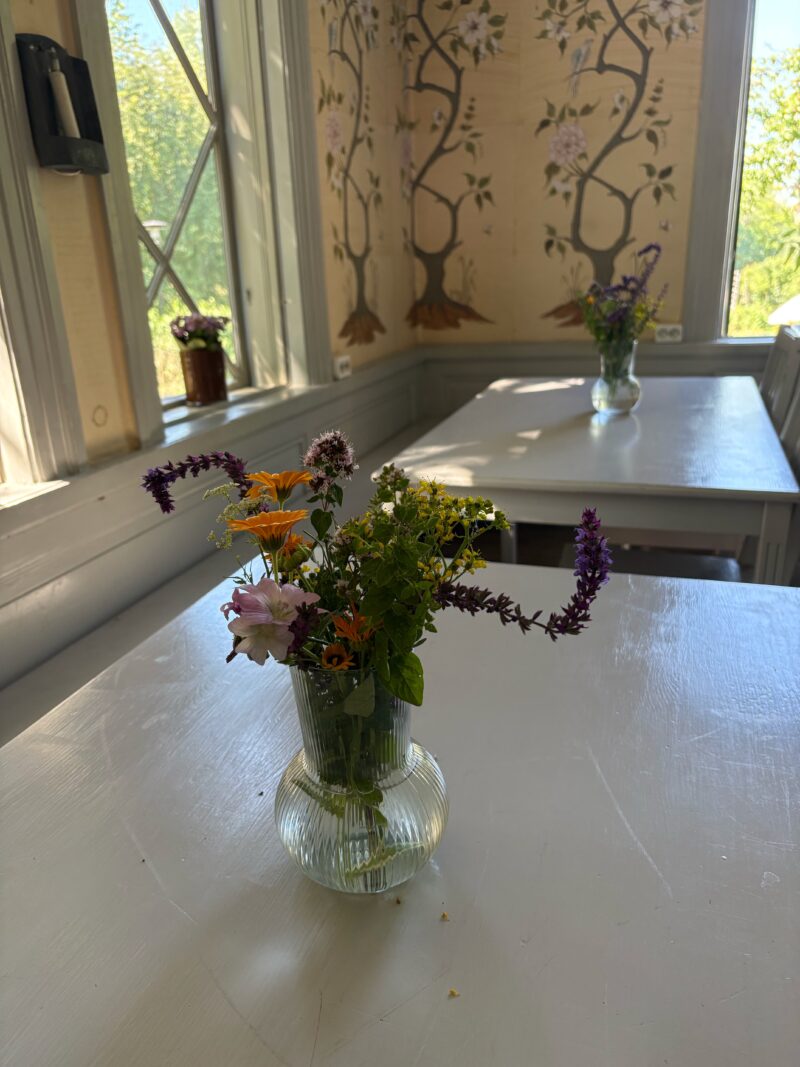 市庁舎エリアでランチができる貴重な場所。混雑を避けて11時前に入りましたが、一番乗りで、滞在中もずっと空いていました。各テーブルには花が飾られ、窓からは美しい市庁舎と緑が望めます。市庁舎観光の後には、再訪してアイスクリーム(SEK 35)もいただきました。スタッフの方もフレンドリーで、ごきげんな初日のランチでした。