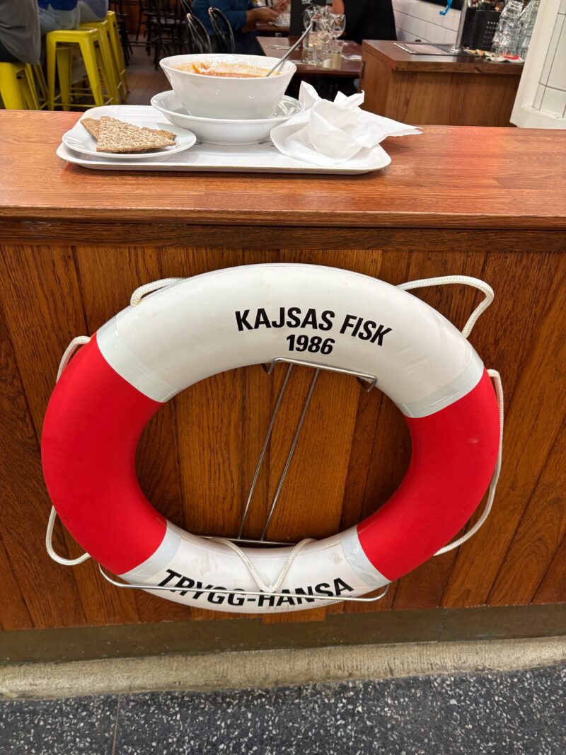 メニュー: 名物は魚介たっぷりのトマトベースのフィッシュスープ(fisksoppa)その他、魚のフライ(fish & chips)なども提供