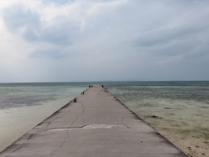 桟橋から眺める夕陽の名所として知られ、有形文化財にも指定されている「西桟橋」。干潮時には遠浅の海と空が溶け合うような景色が広がります。ガイドブックなどでは、「竹富島に宿泊したら、ここはマスト!」と言われる景勝地です。