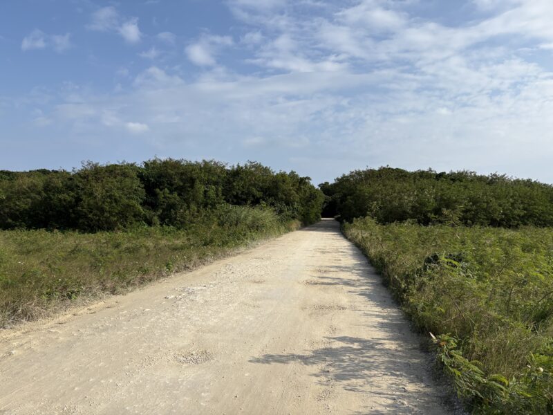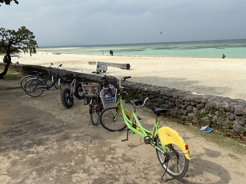 カイジ浜のあと、自転車で仲筋集落へ向かいました。白砂が敷き詰められた道は、走るたびにやわらかな音を立て、どこか懐かしい気持ちにさせてくれます。
