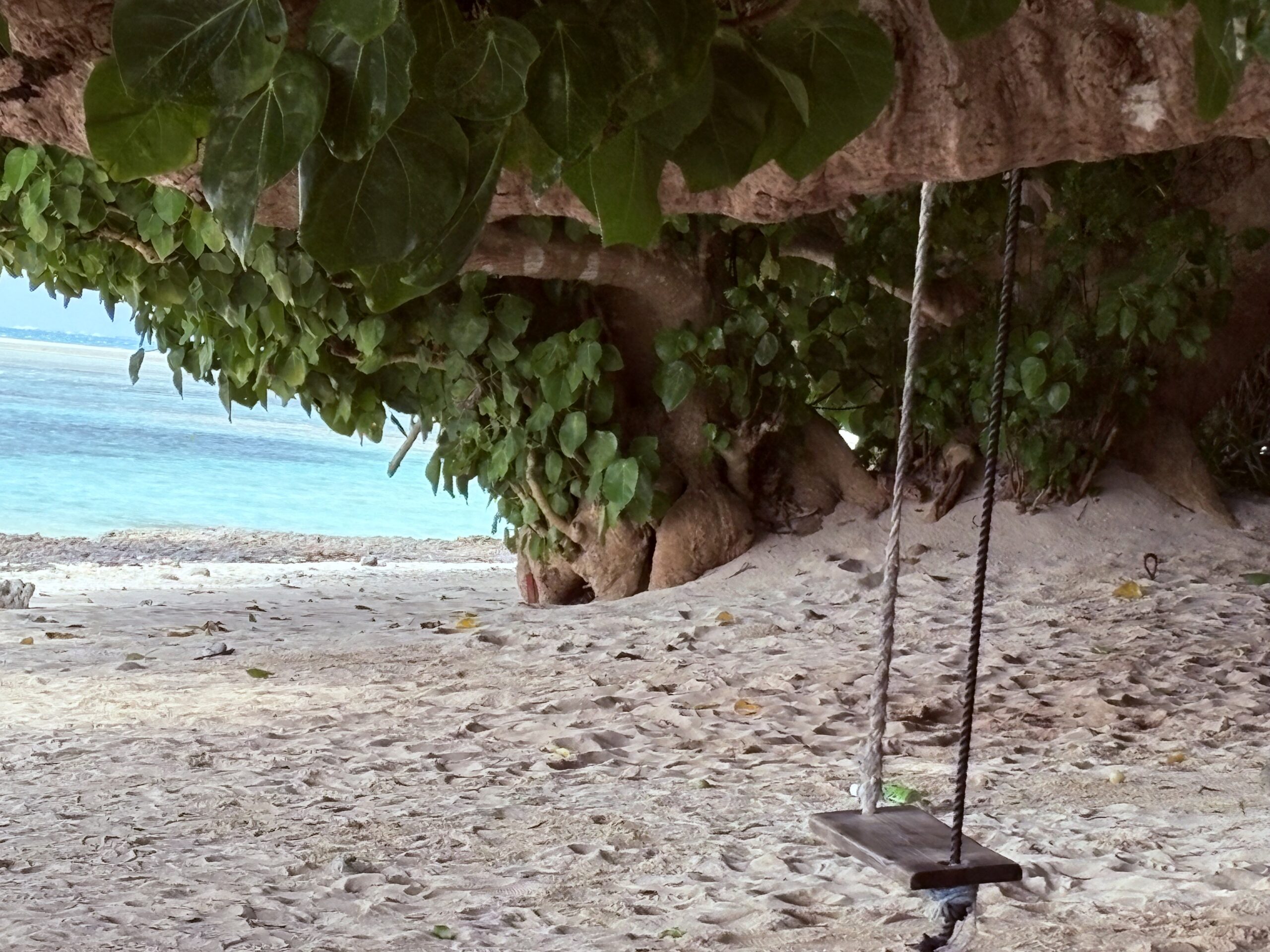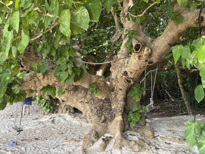 浜の入り口付近は、星砂を探す観光客が多かったのですが、少し浜辺を歩くと人気もなく美しい海と木と空が。しばし浜辺に座ってその穏やかな景色をのんびり楽しみました。観光地らしい賑わいと、島らしい静けさ。その両方を感じられるのが、カイジ浜の魅力なのかも。