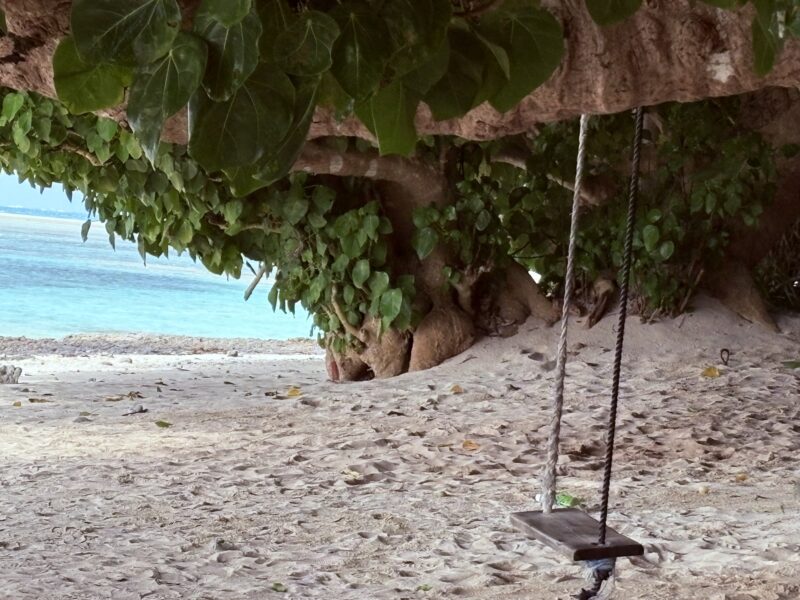 木立の中を通る道は静かで、木々がちょうどいい具合に強い日差しを遮ってくれていました。島の自然を身近に感じられる心地よい静かな帰り道です。途中、特別な景色があるわけではありません。そして誰にも出会わない。足元の土の感触を感じながら「歩いて帰る時間」そのものが、この日を静かに締めくくってくれました。