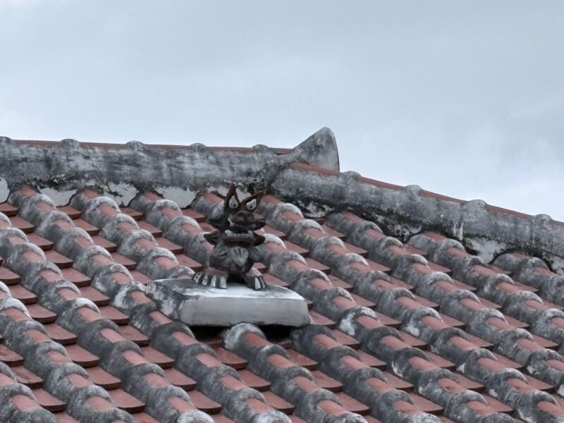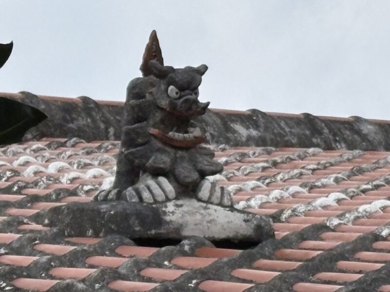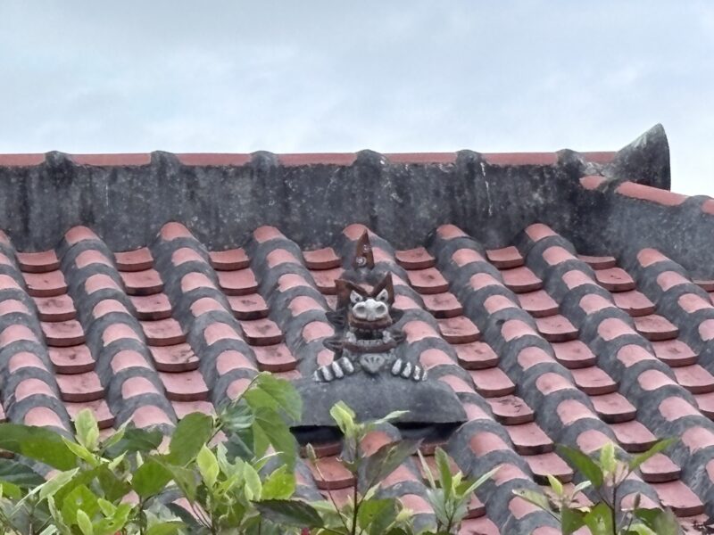 竹富島の伝統的な赤瓦の家では、屋根の棟(てぃーぬふぁ)の一番高いところにシーサーを据えるのが習わし。これは、家全体、集落全体を上から見守り、魔除けの存在としての意味があるそうです。沖縄本島では「口を開けた雄+口を閉じた雌」のペアが多いですが、竹富島では基本的に一匹置き。理由は諸説あるようですが、よく言われるのは以下の通り👇