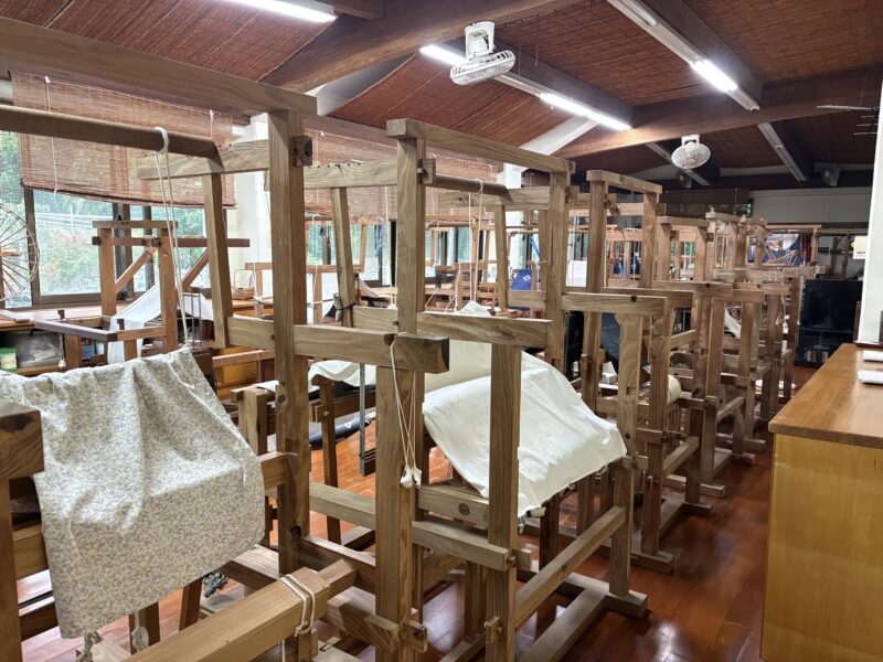 私が通りかかって入った時は、開館直後のようで、人気もなくひっそり。さまざまなたくさんの機織り機がおいてありました。