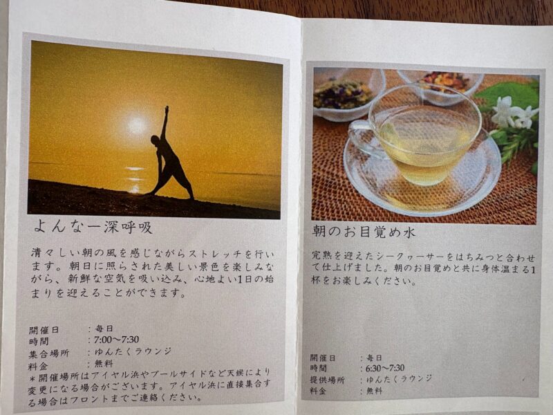 今回は、私が実際に参加した無料サービスやイベントを中心に、「ゆんたくラウンジ」での過ごし方をご紹介します。これから宿泊される方の参考になればうれしいです。