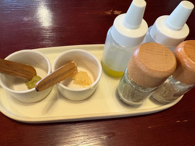 しかも、タレと薬味が数種類用意されています。