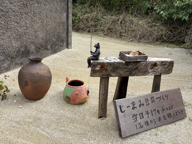 ふと目に留まった一軒のおうちの入口に、「ジーマミー豆腐作り体験」の案内が出ていました。
