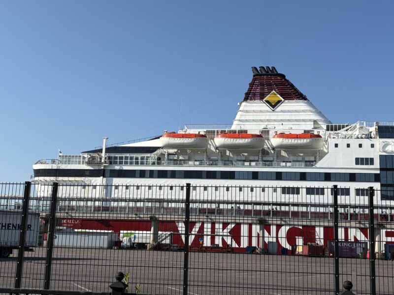 出航は夕方16時ごろ、スウェーデン・ストックホルムを出発し、翌朝8時ごろにはフィンランド・ヘルシンキに到着予定。ストックホルムからヘルシンキへは「シリアライン(Silja Line)」という別の運行会社もあります。どちらもほぼ同じルートと所要時間ですが、内容はほぼ同じでも少しリーズナブルだと言われるヴァイキングライン(Viking Line)を選びました。ちなみに、シリアラインとは、出発・到着の港が異なるので、乗船前には要チェックです。